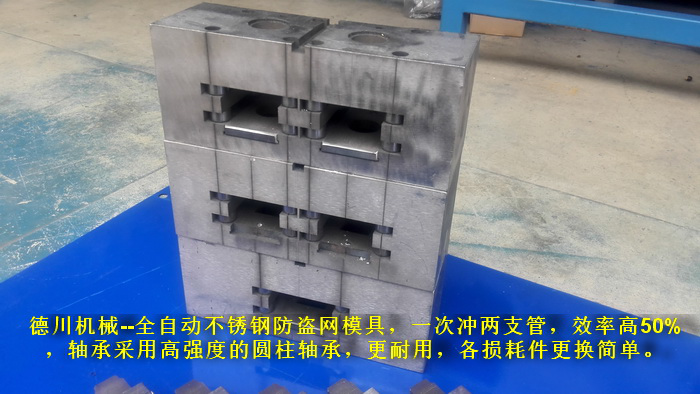 一套模具同時(shí)沖兩支管,效率提高一倍,兩個(gè)工位同時(shí)工作,最多同時(shí)沖4支管
